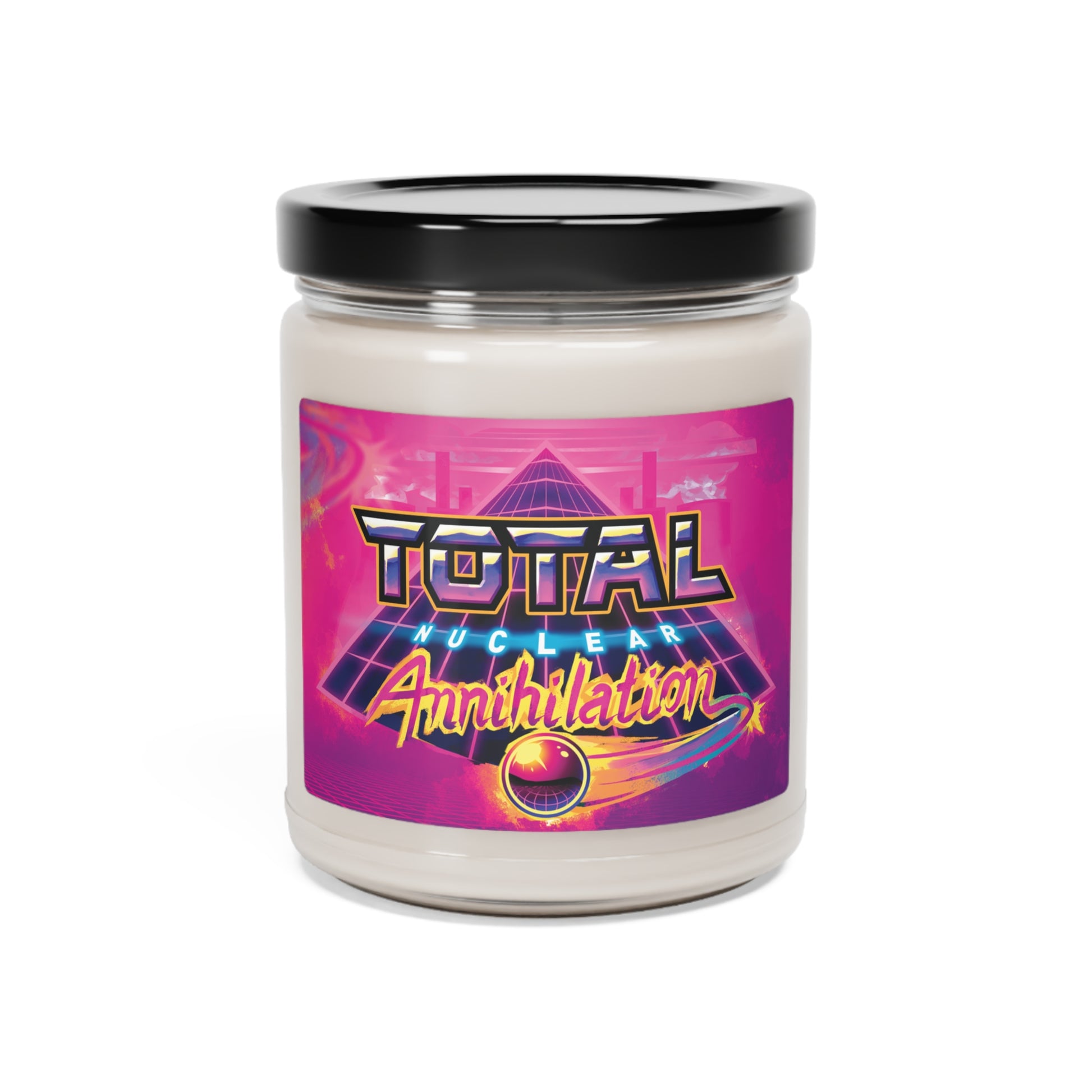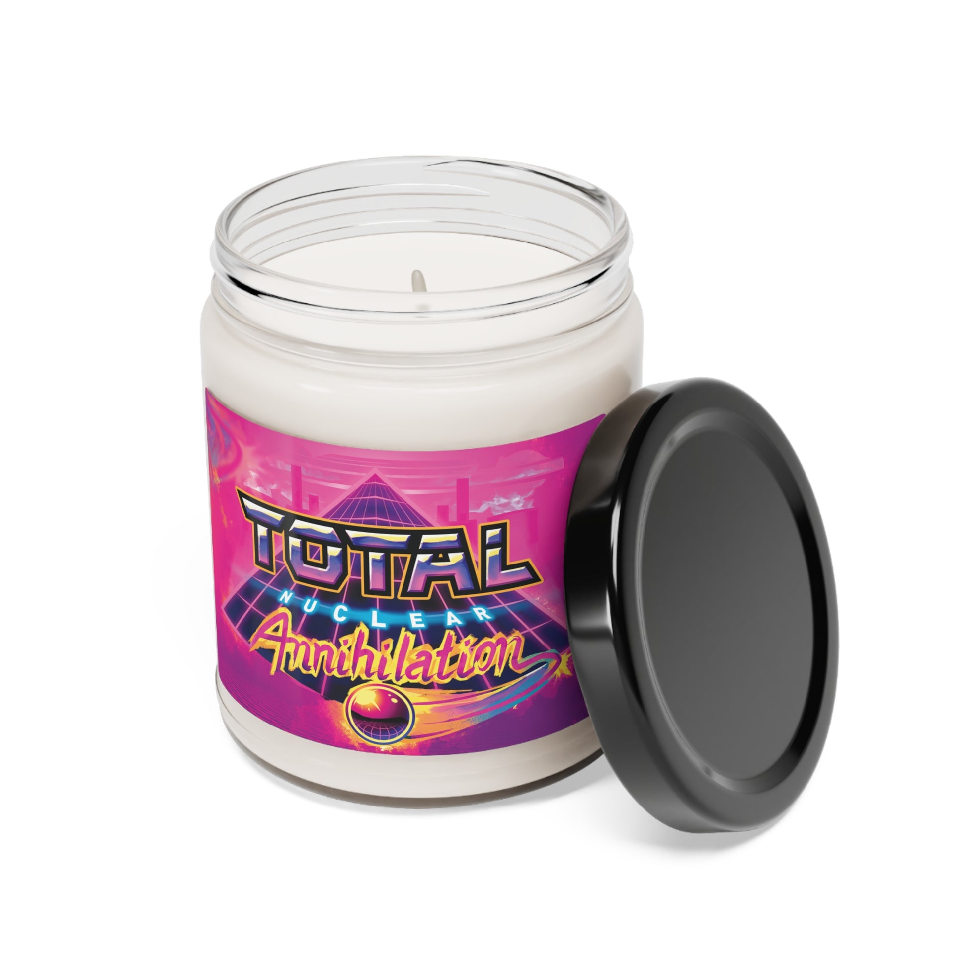 Yes, a candle. Show your love for the Total Nuclear Annihilation pinball machine with by lighting this candle on fire. This totally normal candle comes in many different scents and its 9oz containment vessel is made of some alloy of fused silica sand from the earth. The material inside the vessel is made with 100% natural soy wax with a 100% cotton ignition sustainment core that has a half life of about 25 hours, but eventually after about 50-60 hours of burning will not have enough fuel to sustain itself any longer. The good news is that since the fuel is not radioactive, the containment vessel can be reused to hold extra tears, or the worn out pinballs you drained when playing TNA. Each candle is guaranteed to not improve your pinball skills but it will definitely sweeten the air in your moments of defeat or blissful glory.