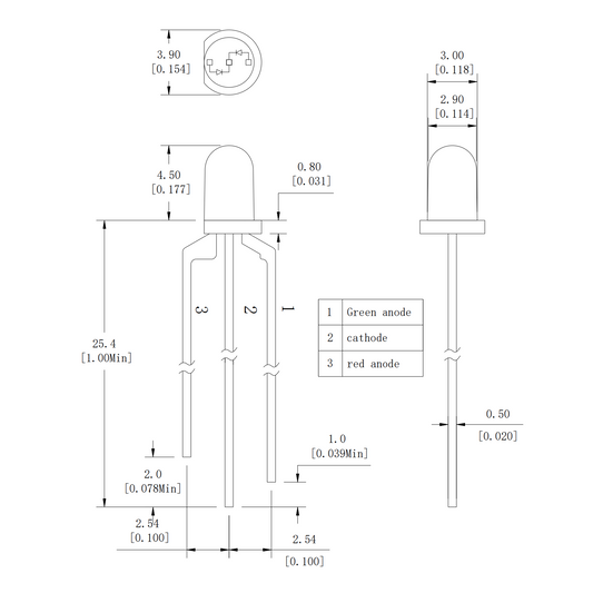 DDE-0016-00 Hakai Labs 3mm バイカラー 2 リード 色覚異常 LED