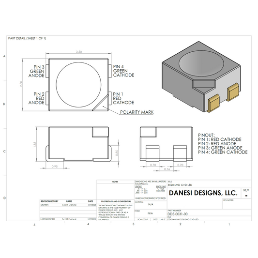 DDE-0016-00 Hakai Labs 3mm バイカラー 2 リード 色覚異常 LED