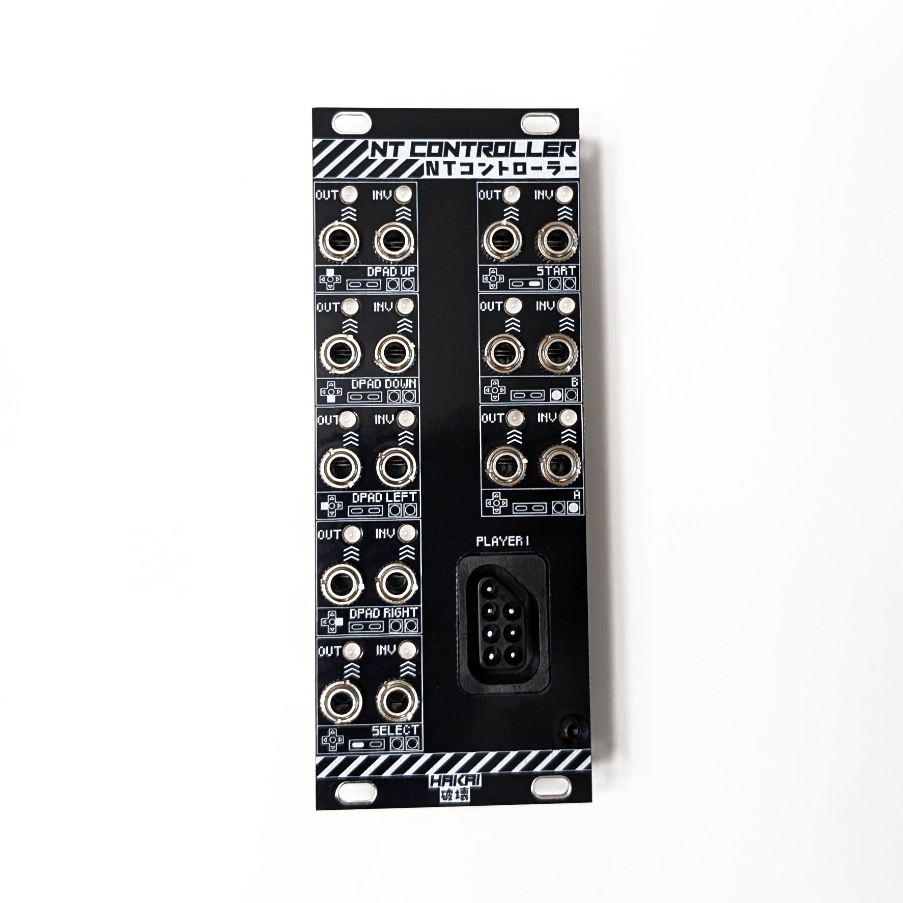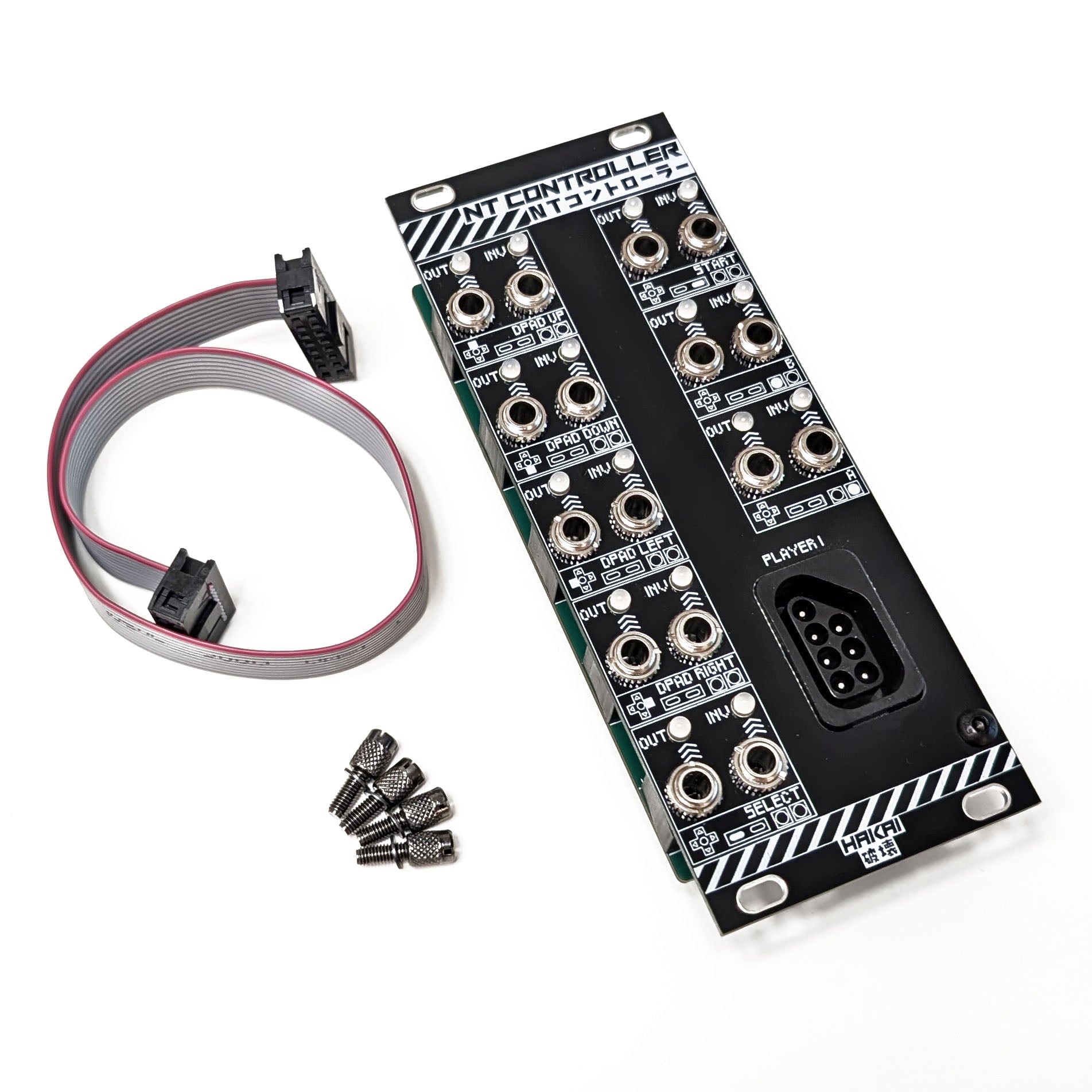 Introducing the NT Controller Eurorack Module by Hakai Labs. This module enables you to fully utilize a classic gamepad controller in your Eurorack setup from your favorite 80s entertainment system. This is amazingly useful in live situations where you need to control many things at once. This NT Controller module has gate, and inverted gate, outputs (0 to 5v) for each button of the gamepad. Also accompanying the outputs (and inverted outputs), are handy frosted red LEDs just like the original console.